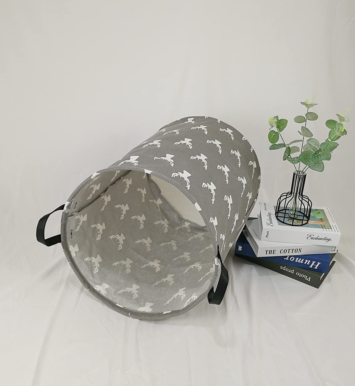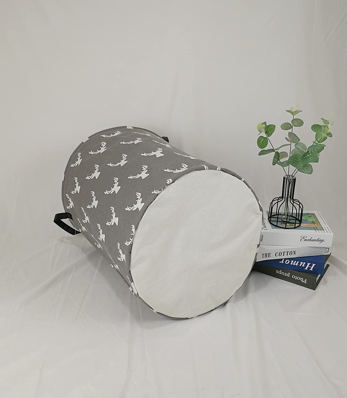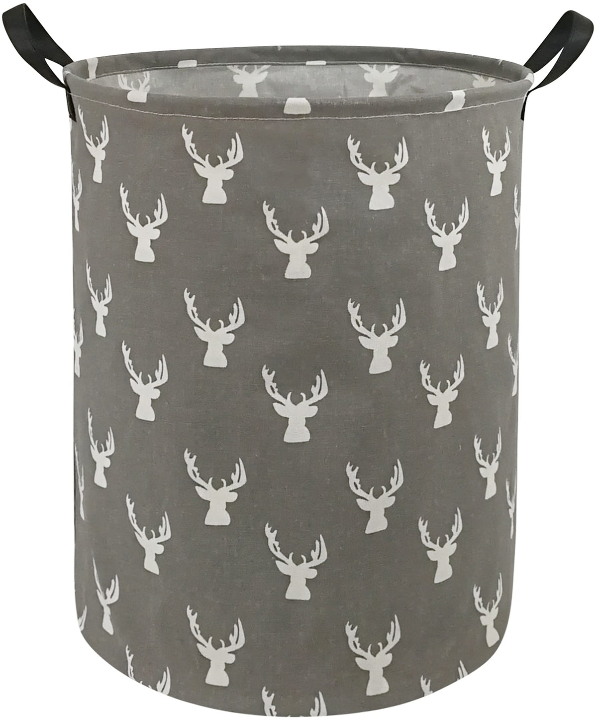 KUNRO Large Sized Storage Basket Waterproof Coating Organizer Bin Laundry Hamper for Nursery Clothes Toys (Grey deer)