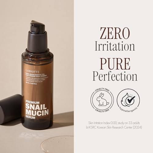LABIOTTE Premium Snail Mucin Serum | Korean Skin Care Face Serum for Women & Men w/ 72% Snail Mucin Essence | Hypoallergenic Soothing Serum for Face | Hydrating Serum for Sensitive Skin (2.02 fl oz)