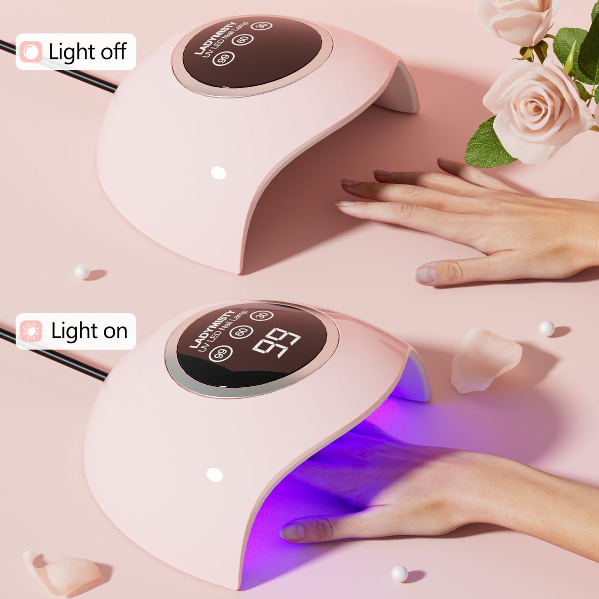 LadyMisty 72W UV LED Nail Lamp Light Dryer for Nails Gel Polish with 18 Beads 3 Timer Setting & LCD Touch Display Screen, Auto Sensor, Professional Nails, Pink