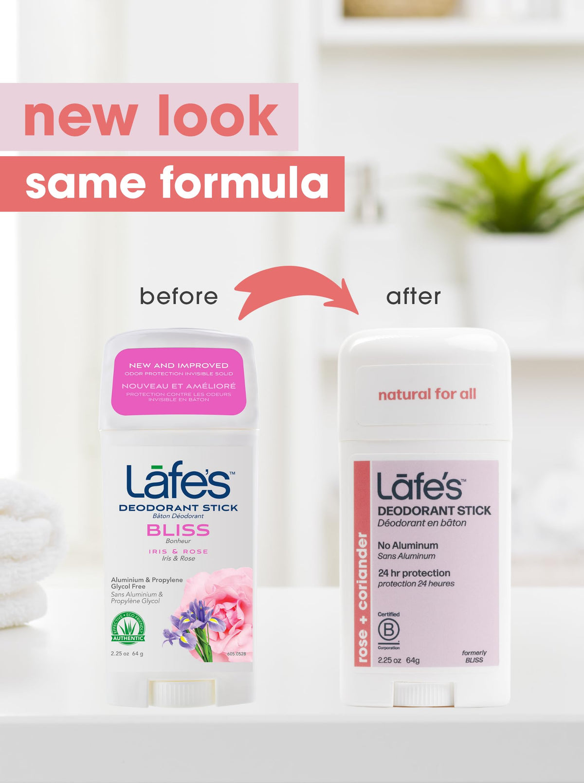 Lafe's Natural Deodorant in Rose & Coriander is an aluminum-free deodorant stick that offers 24-hour protection, keeping you fresh and confident throughout the day.