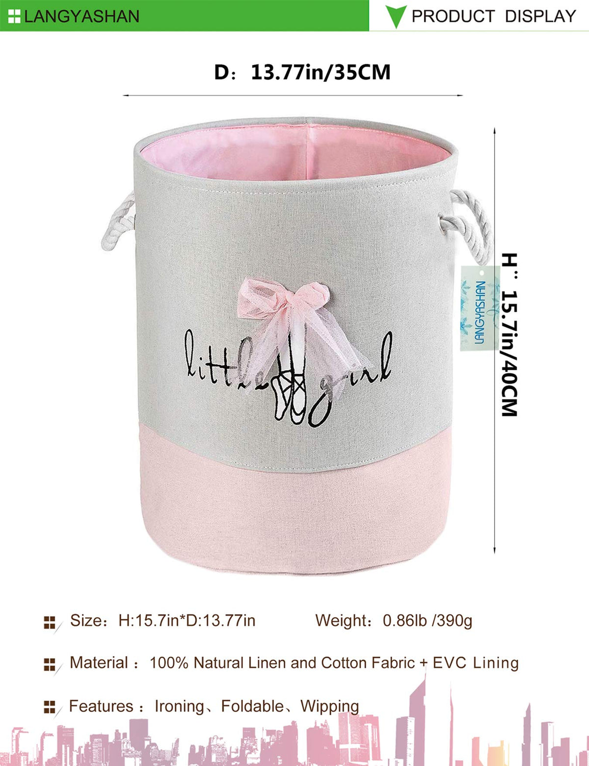 LANGYASHAN Laundry Basket Canvas Collapsible Organizer Storage Basket for Boys Girls Laundry Hamper Toy Bins Gift Baskets Bedroom Clothes Children Nursery (Pink Lace)