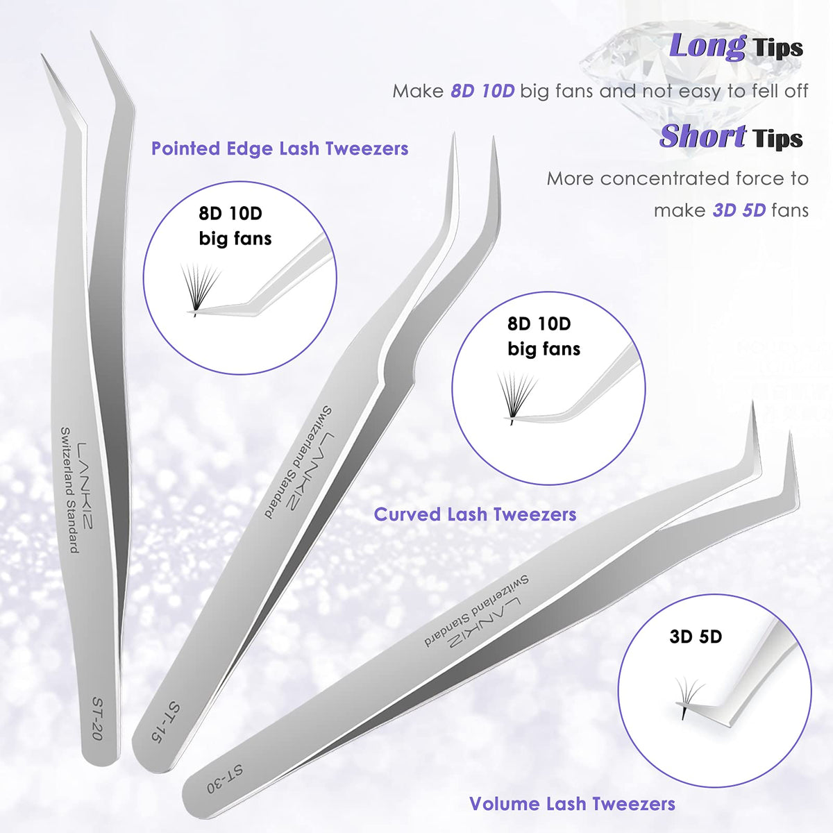 LANKIZ Eyelash Extension Tweezers Set offers precise and easy application of lash extensions. The stainless steel construction and curved tips ensure professional results every time.
