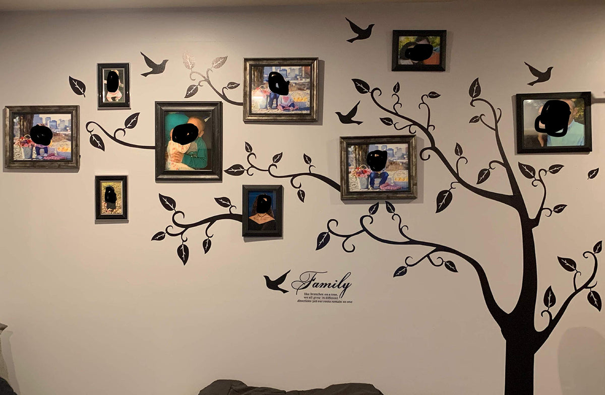 Add a personal touch to your living room with Large Family Tree Wall Decor. This DIY black photo frame wall sticker creates a unique and sentimental display for your family memories.