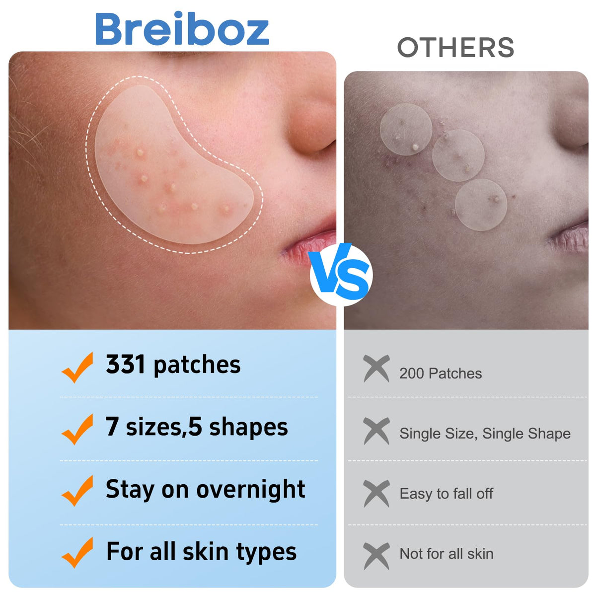 Experience clearer skin with our Large Pimple Patches for Face. This Bigpack contains 331 patches in 7 different sizes, including 306 round patches and 25 XL patches. Infused with Tea Tree, Salicylic Acid, and Cica Oil, these hydrocolloid bandages effectively cover and treat big spots, providing targeted skincare solutions.