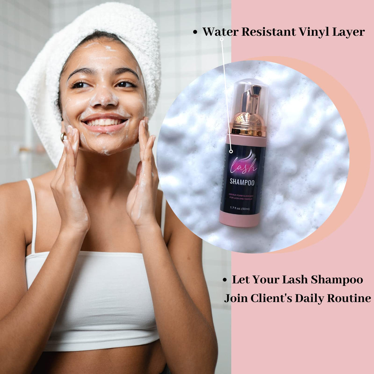 Lash Shampoo Label Stickers for Bottle 50pcs Eyelash Extensions Bath Wash Labels for Foam Pump Dispenser