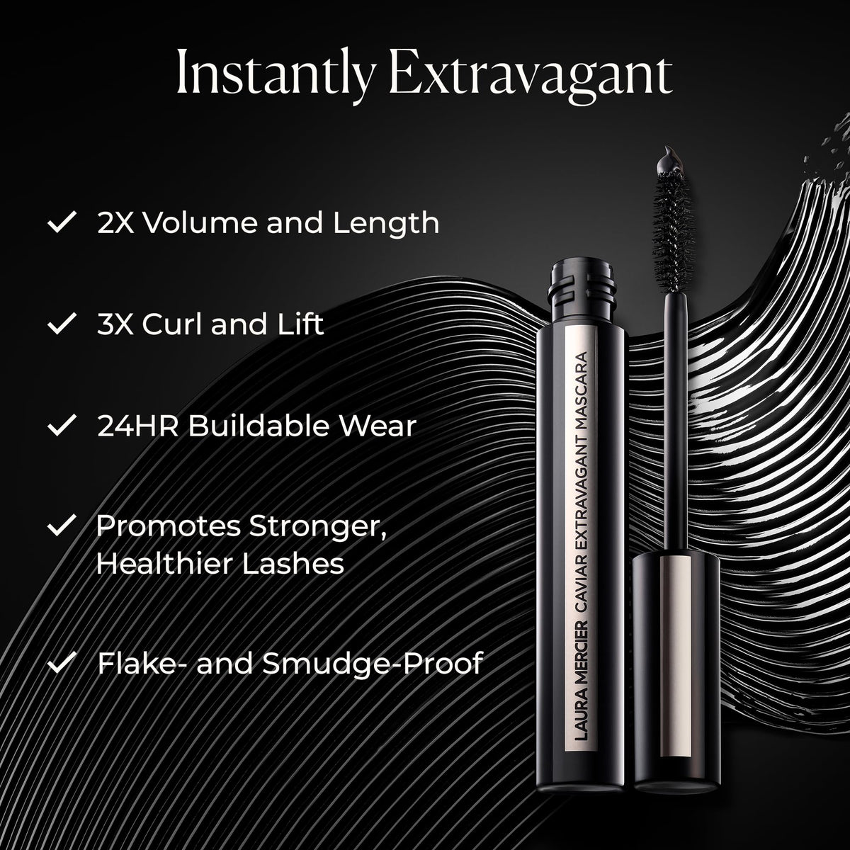 Laura Mercier Caviar Extravagant Mascara Volume and Length, 3X Curl and Lift, 24HR Buildable Wear, Promotes Stronger, Healthier Lashes, Intense Black, Smudge- & Transfer-Proof