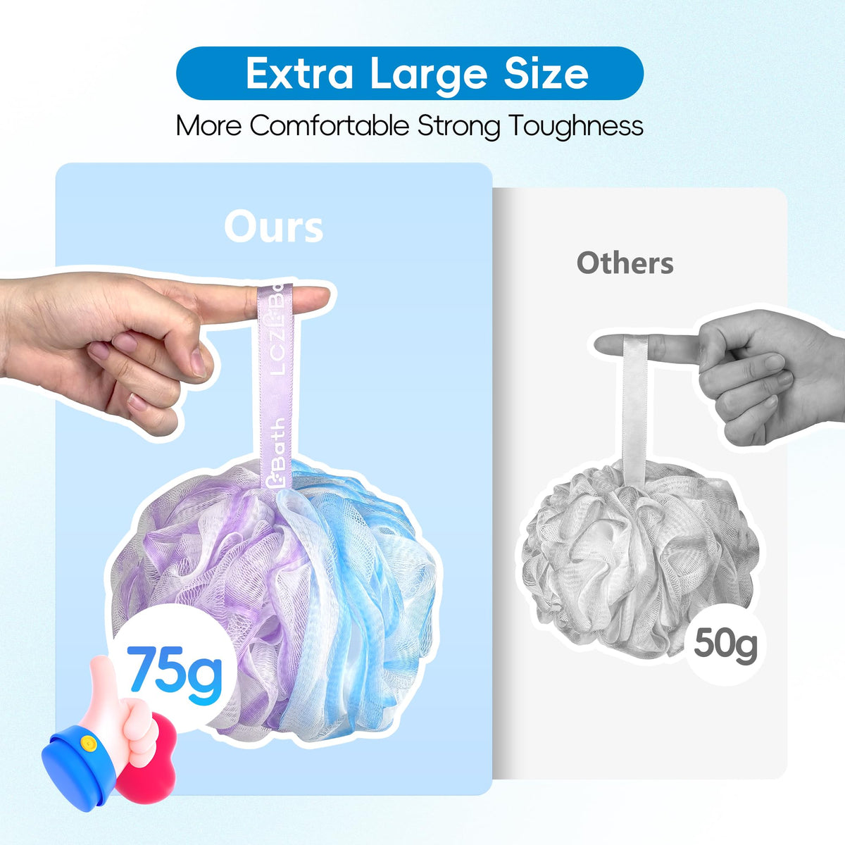 The LCZLBath Large Loofah Pack offers a luxurious bath scrubbing experience with its soft poufs and puffs. It is designed for effective body scrubbing and cleansing.