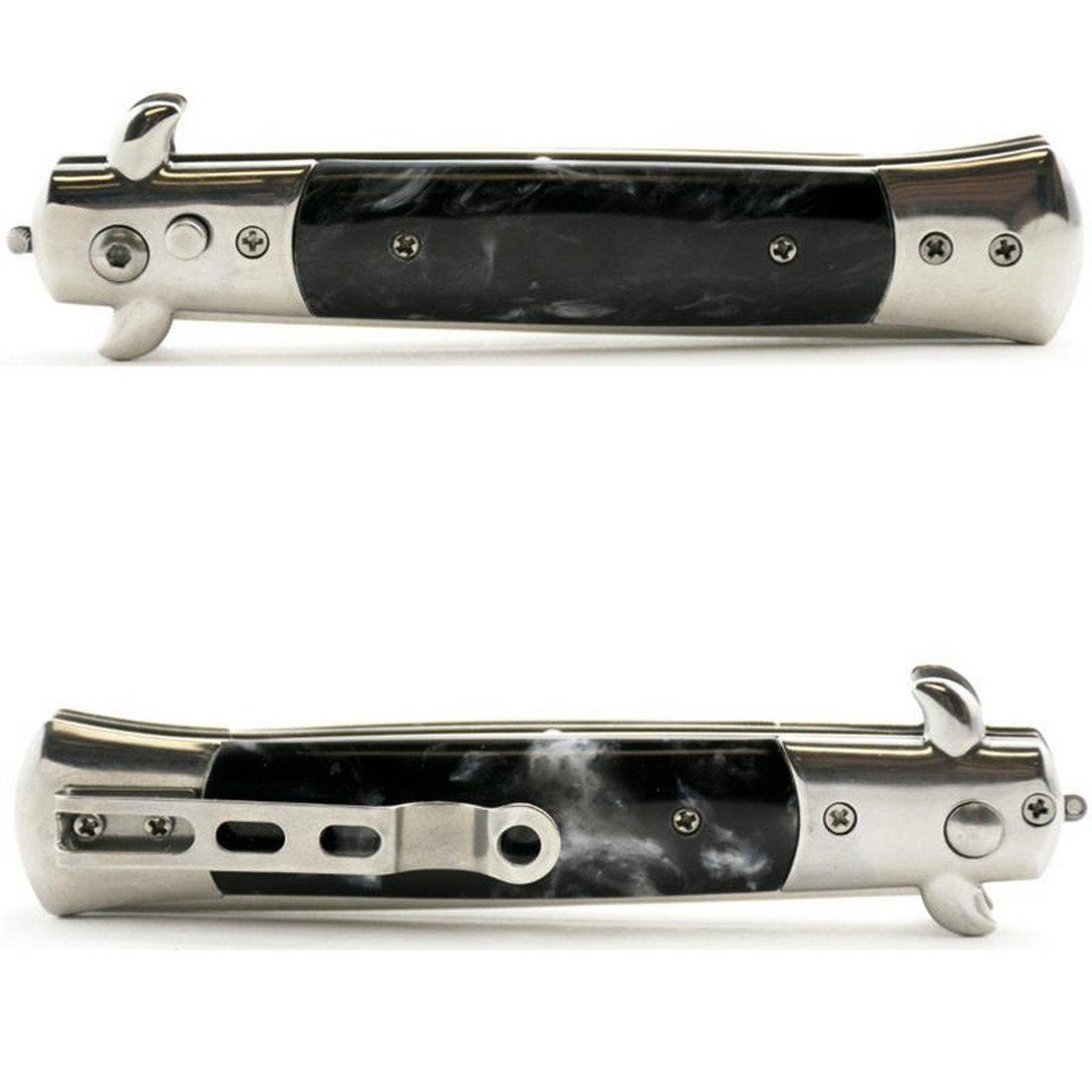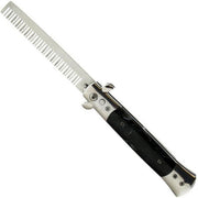 Le Fu Li Pocket Folding Flick Hair Comb in Black Pearl Handle is a versatile comb for beard, mustache, and head hair styling. This stainless steel spring jump brush offers salon-quality results, making it a convenient beauty tool for daily use.