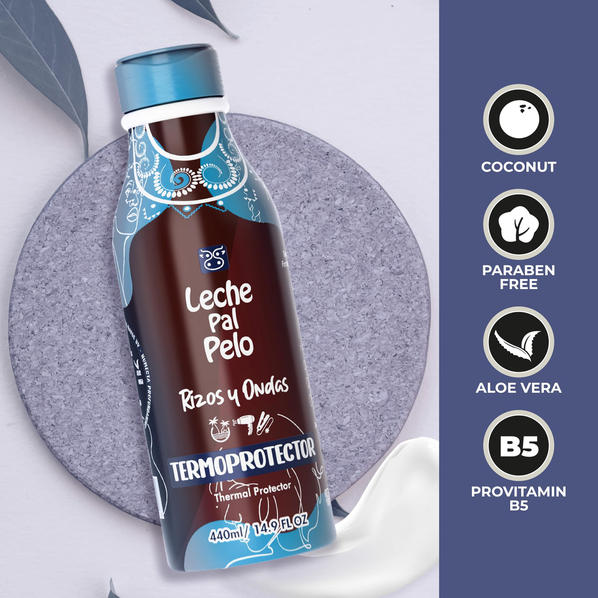 Nourish your curly and wavy hair with Leche Pal Pelo Thermal Hair Protector. This leave-in treatment hydrates, controls frizz, and enhances your hair's natural beauty.
