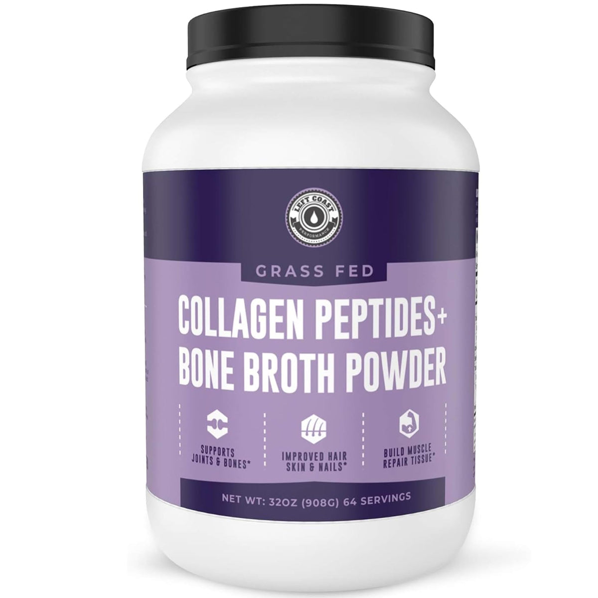 Left Coast Performance Collagen Bone Broth Powder is a 2lb pack made with grass-fed collagen peptides. This unflavored bone broth is dairy-free, zero carb, and offers 64 servings, providing essential protein for a healthy diet.