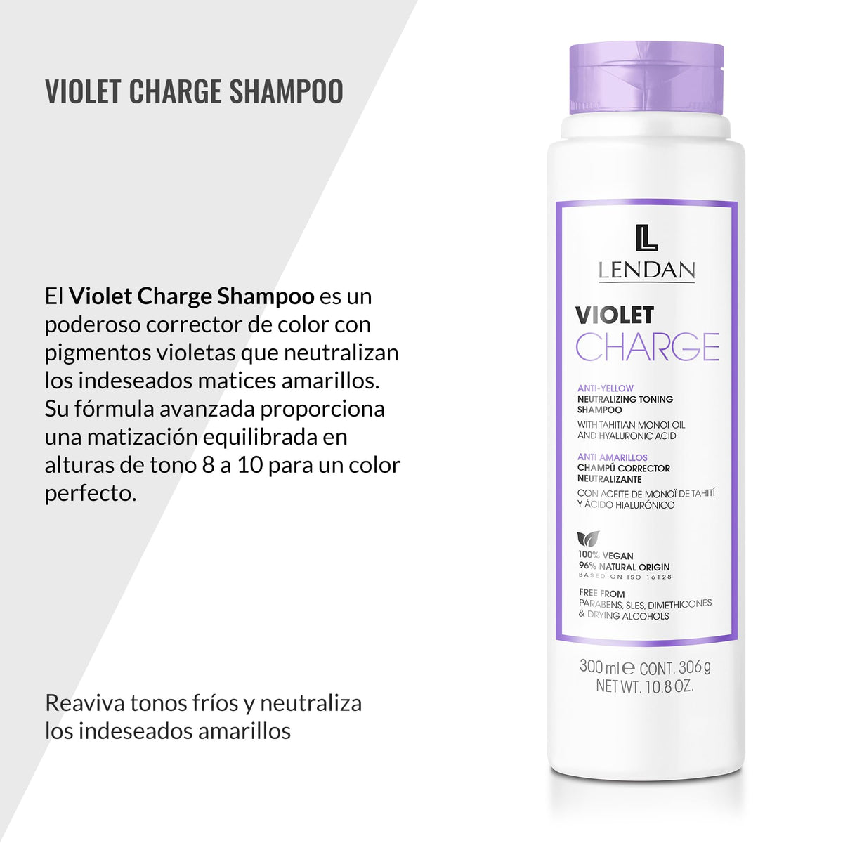 Lendan - Purple Shampoo - Violet Charge Shampoo - 300 ml - With Violet Pigments - Color Correcting - Neutralizes Yellow Tones - Deep Hair Hydration - Vegan