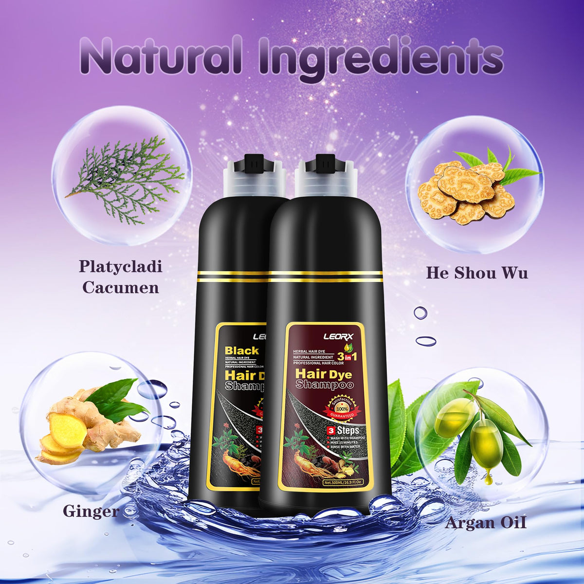 Discover the magic of Leorx Black Hair Dye, a 3-in-1 instant herbal coloring shampoo specially formulated for gray hair. Ideal for both women and men, this shampoo para canas mujer offers a convenient coloring solution.