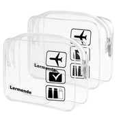 Lermende 2pcs/pack Clear Toiletry Bag TSA Approved Travel Carry On Airport Airline Quart Sized 3-1-1 Compliant Bag Make-up Pouch Kit (Clear)