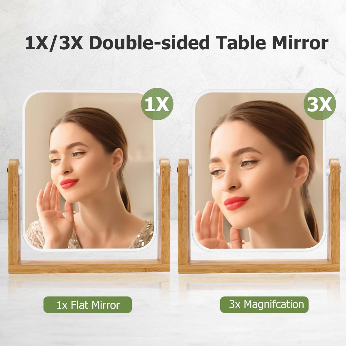 Get ready with ease using the LFOYOU Vanity Makeup Mirror with Stand. This double-sided mirror offers 1X and 3X magnification, along with a 360-degree swivel design for effortless makeup application.