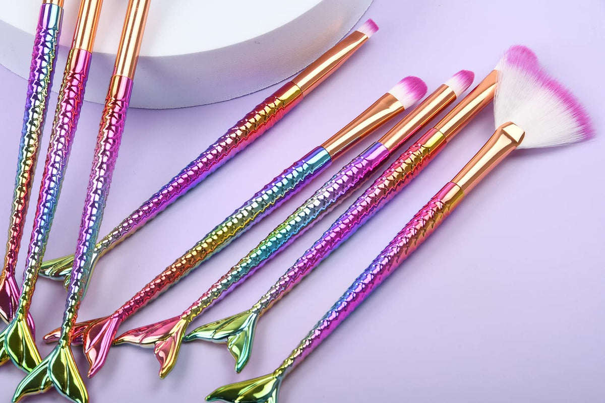 Enhance your makeup routine with the LHEI New 10 Pcs Mermaid Makeup Brush Set. This professional eye makeup brush set includes brushes for eyeshadow, concealer, eyeliner, and brow blending, providing you with precise application and flawless results.