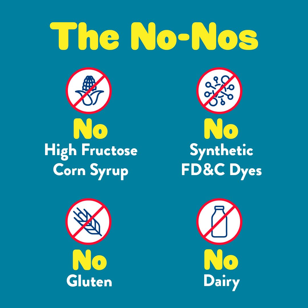 Ingredients: Sugar, glucose syrup, water, gelatin less than 2 of citric acid, color blueberry and carrot concentrates, fruit juice, flavors, fumaric acid, lactic acid, and pectin.