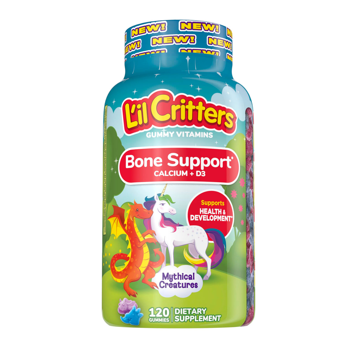 | product benefit | Lil Critters Bone Support Gummy Vitamin for Kids, Bone Support, Calcium, Vitamin D3, 120 gummies |