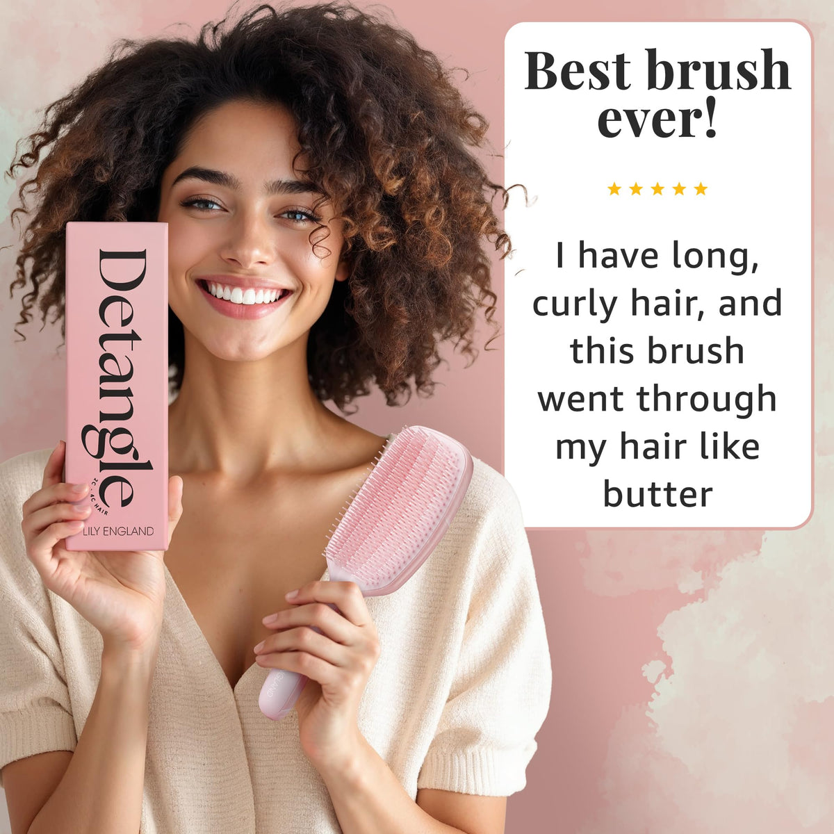Lily England Curly Hair Brush - Detangling & Styling Tool with Flexible Bristles for Pain-Free Wet & Dry Curls (3c to 4c), Pink
