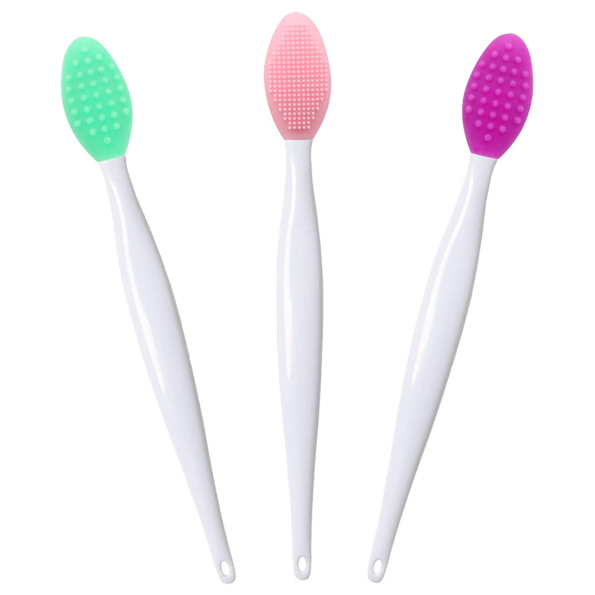 Lip Scrub Brush Lip Brush Tool,Double-Sided Silicone Exfoliating Lip Brush,Gentle Lip Exfoliator Scrubber Brush for Smooth,Soft,Bright,and Healthy Lips(3 PCS) 3 Colors