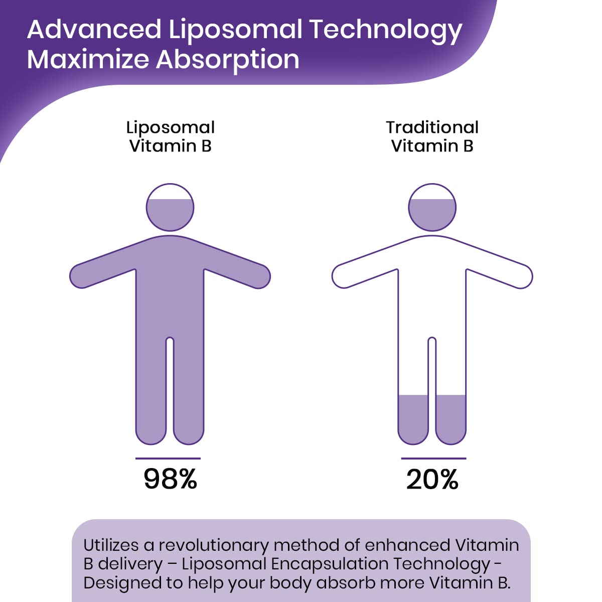 Liposomal Vitamin B Complex Liquid Sublingual provides B vitamins for energy and immune support. Improved absorption with Methylated B12, B1, B2, B3, B5, B6, Folate, Biotin.