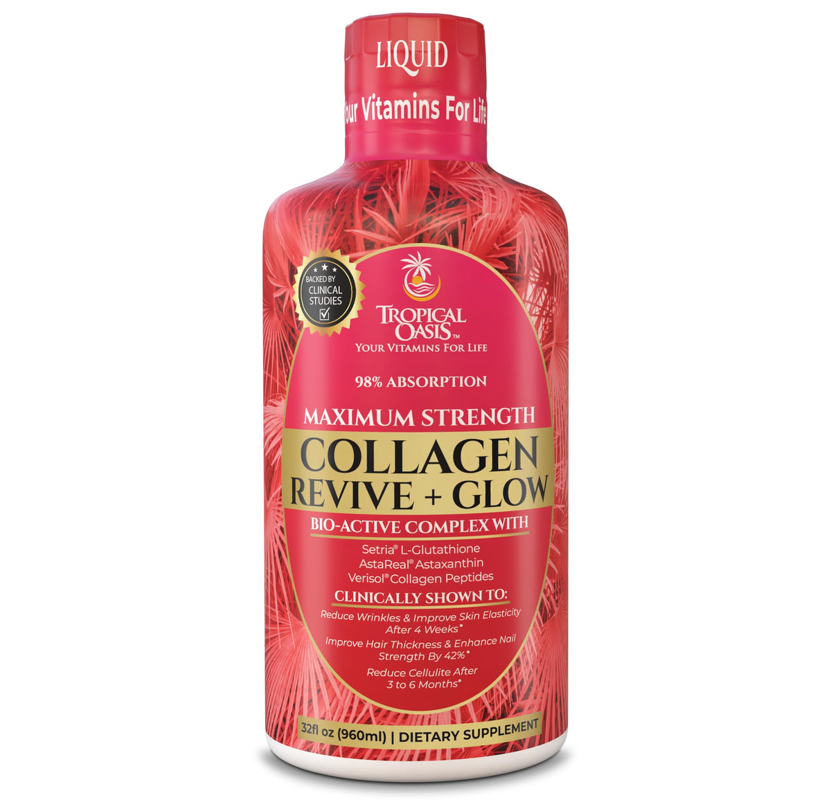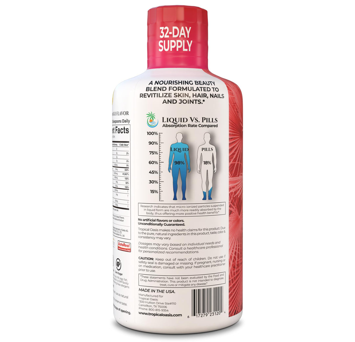 Tropical Oasis Liquid Collagen for Women & Men– 5000mg VERISOL Hydrolyzed Collagen Peptides + Biotin | Supports Skin Elasticity, Hair Growth, Strong Nails | Clinically Studied Ingredients| 32 Serv