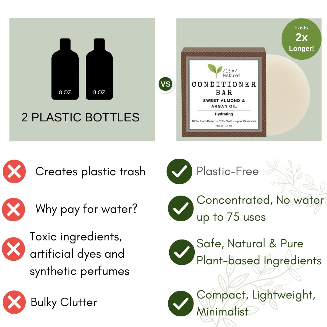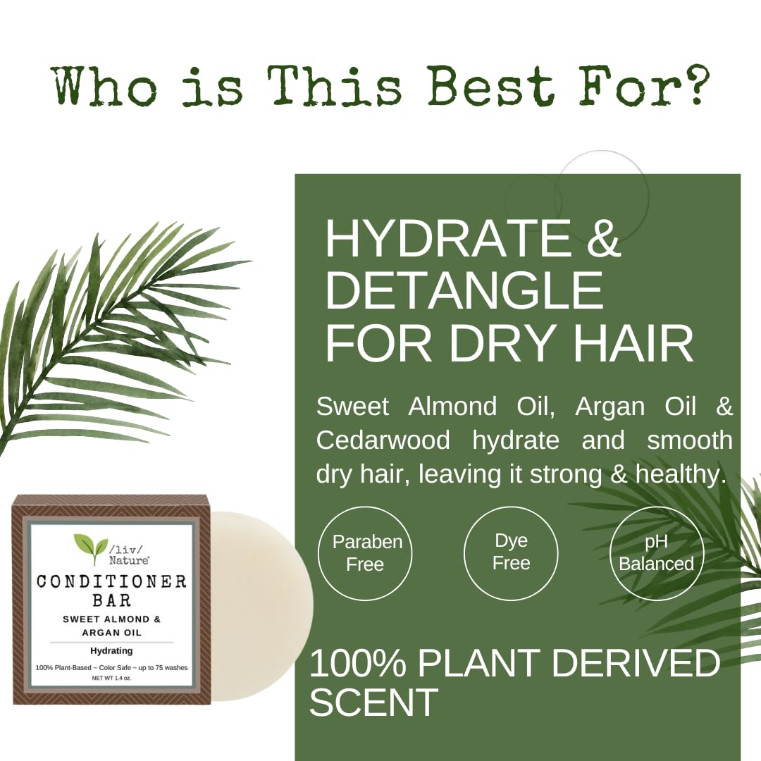 /liv/ Nature Conditioner Bar | Hydrating Conditioner Bar for Dry Hair | Argan Oil & Sweet Almond Oil | Travel Essential | USA 1-pk