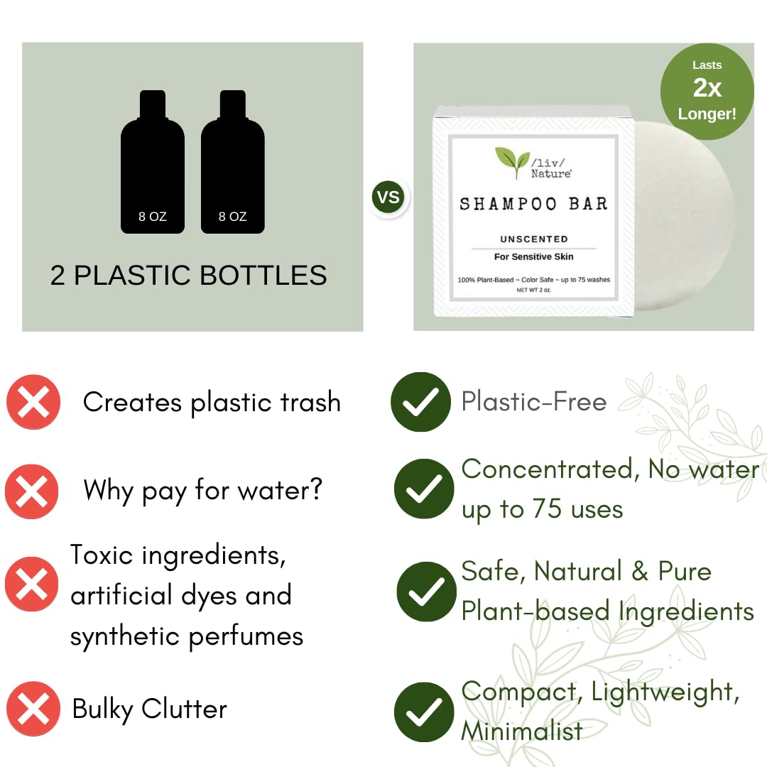/liv/Nature Fragrance Free Shampoo Bar | Clean Non Toxic Shampoos | Hypoallergenic | Gentle, Safe for Sensitive Skin, Psoriasis | Unscented | Travel Essentials | Made in USA 1-pk