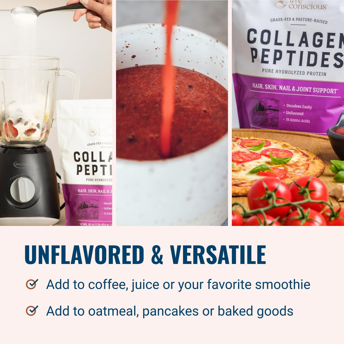 Live Conscious Collagen Powder Hydrolyzed Collagen Peptides Type I & III - Keto & Paleo Friendly - Unflavored - 20 Servings, 7.8 oz