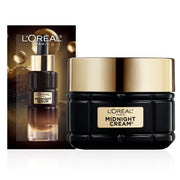 L'Oreal Paris Age Perfect Anti-Aging Midnight Cream is a luxurious solution to reduce wrinkles and firm the skin. This cream, paired with a serum sample, provides overnight rejuvenation for a youthful glow.