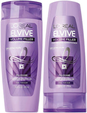 Transform your hair with L'Oreal Paris Elvive Volume Filler Thickening Shampoo and Conditioner Set. This duo, each 12.6 ounces, adds volume and thickness to your hair for a fuller, more luxurious look.
