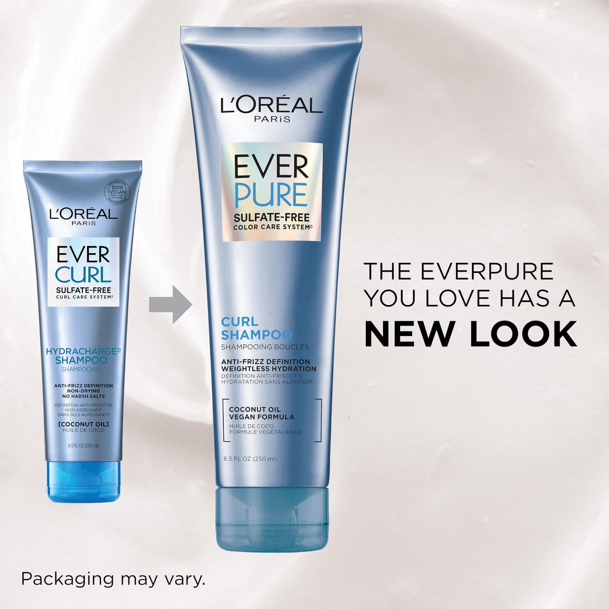 L'Oreal Paris Sulfate Free Shampoo and Conditioner for Curly Hair, Lightweight, Anti-Frizz Hair Care with Coconut Oil, EverPure, 8.5 Fl Oz, Set of 2 (Packaging May Vary)