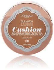 Illuminate your complexion with L'Oréal Paris True Match Lumi Cushion Foundation in C8 Cocoa, a radiant formula that provides a flawless finish and lasting luminosity.