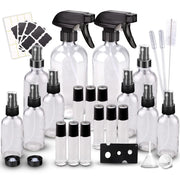 Glass Spray Bottles Kits, BonyTek Empty 12 10 ml Roller Bottles, 12 Clear Essential Oil Bottle (2 x 16oz,2 x 4oz,8 x 2oz) with Labels for Aromatherapy Cleaning Products