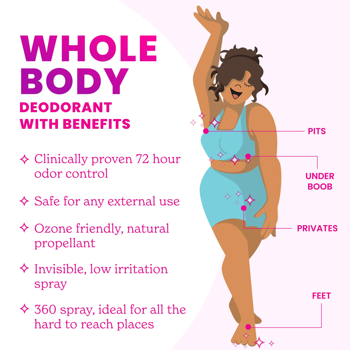 Directions :: Apply to dry skin. Shake and spray at any angle, 6 inches away from skin, anywhere you want to control odor.