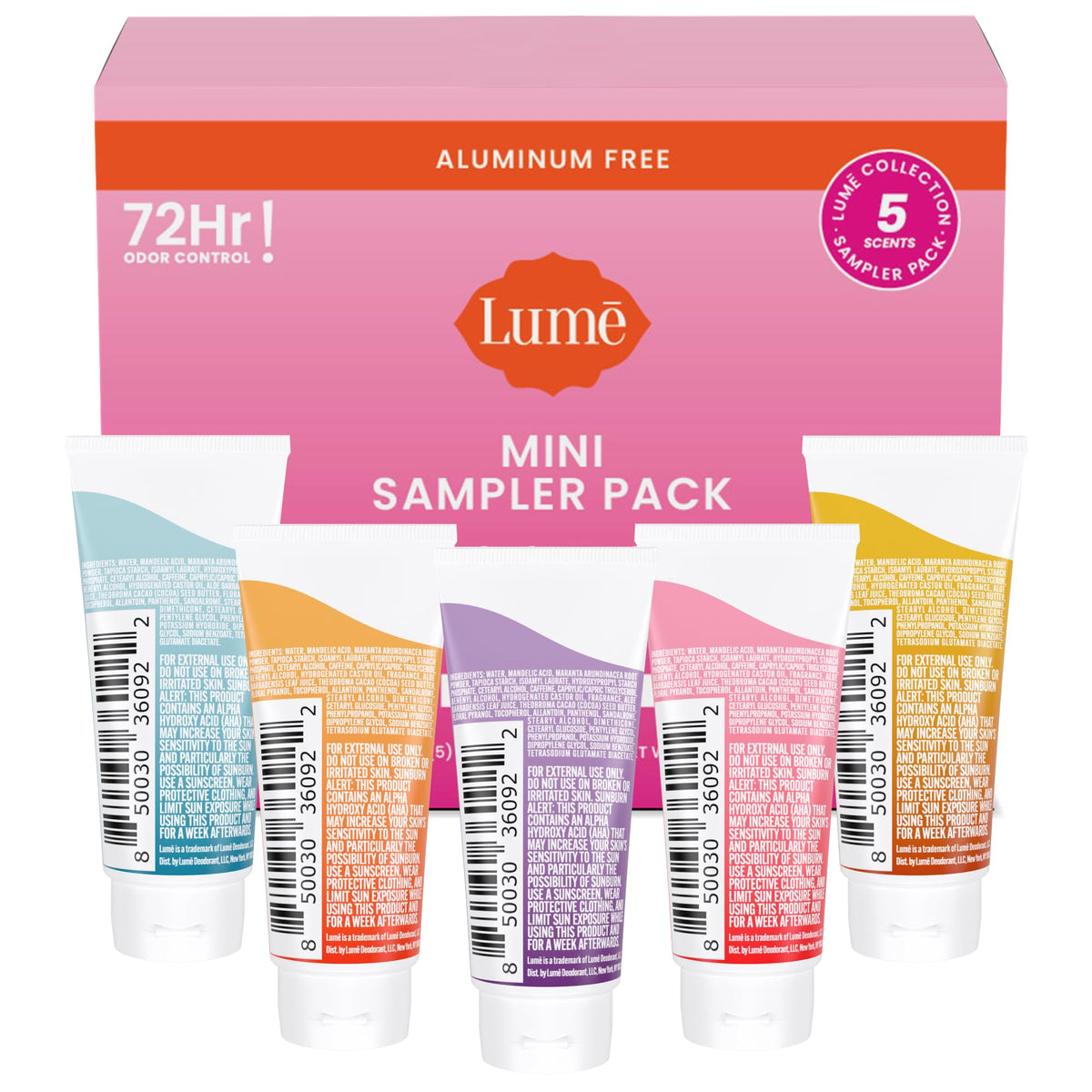 Lume Whole Body Deodorant 5 Pack Sampler - Invisible Cream Minis - 72 Hour Odor Control - Aluminum & Baking Soda Free (Clean Tangerine, Lavender Sage, Peony Rose, Toasted Coconut, Unscented)