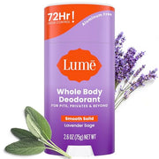 Lume Whole Body Deodorant - Smooth Solid Stick - 72 Hour Odor Control - Aluminum Free, Baking Soda Free and Skin Safe - 2.6 Ounce (Lavender Sage)
