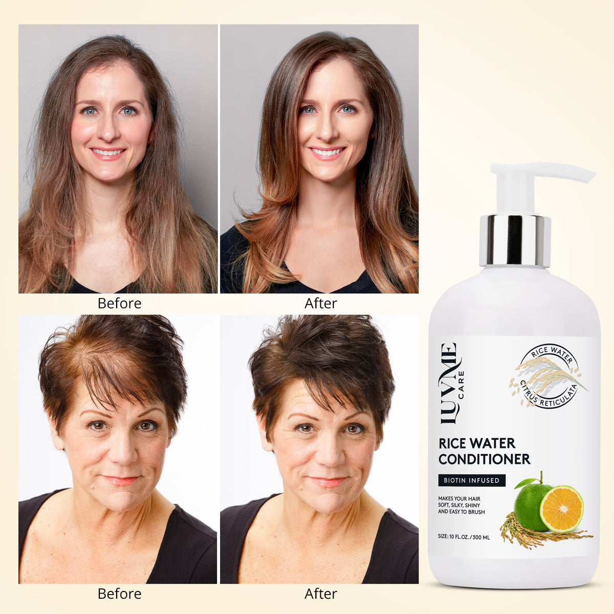 Luv Me Care Rice Water Hair Growth Conditioner 10 Fl Oz with Biotin, Improve Strength, Volume, and Shine, Deep Conditioning for Dry, Frizzy, or Curly Strands