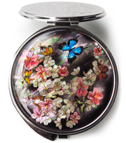 Korean Makeup Compact Mirror Mother of Pearl Metal Apricot Flower Butterfly #55