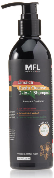 Made For Locs Jamaica Rasta Cleanse 2 in 1 Shampoo is a tropical-scented natural hair cleanser designed for locs and dreadlocks. It cleanses and refreshes, leaving hair feeling rejuvenated.