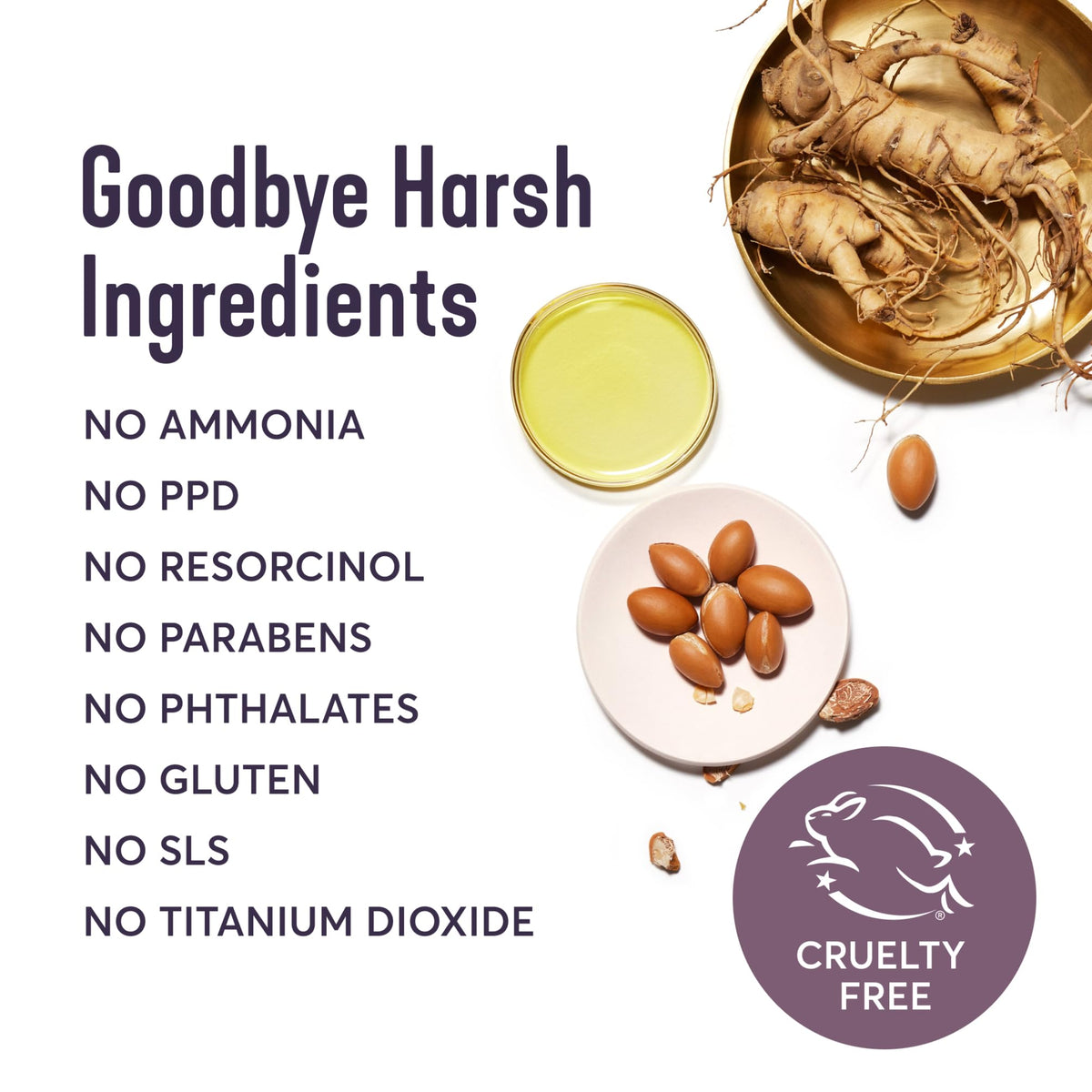 Product Benefit :: Everything you need all in one ammonia-free permanent hair color kit for long-lasting 100% gray coverage. No harsh ingredients: 100% ammonia-free, PPD-free, resorcinol-free, paraben-free, pthalates-free, SLS-free, gluten-free, titanium-dioxide-free. Leaping bunny certified: Always cruelty-free.