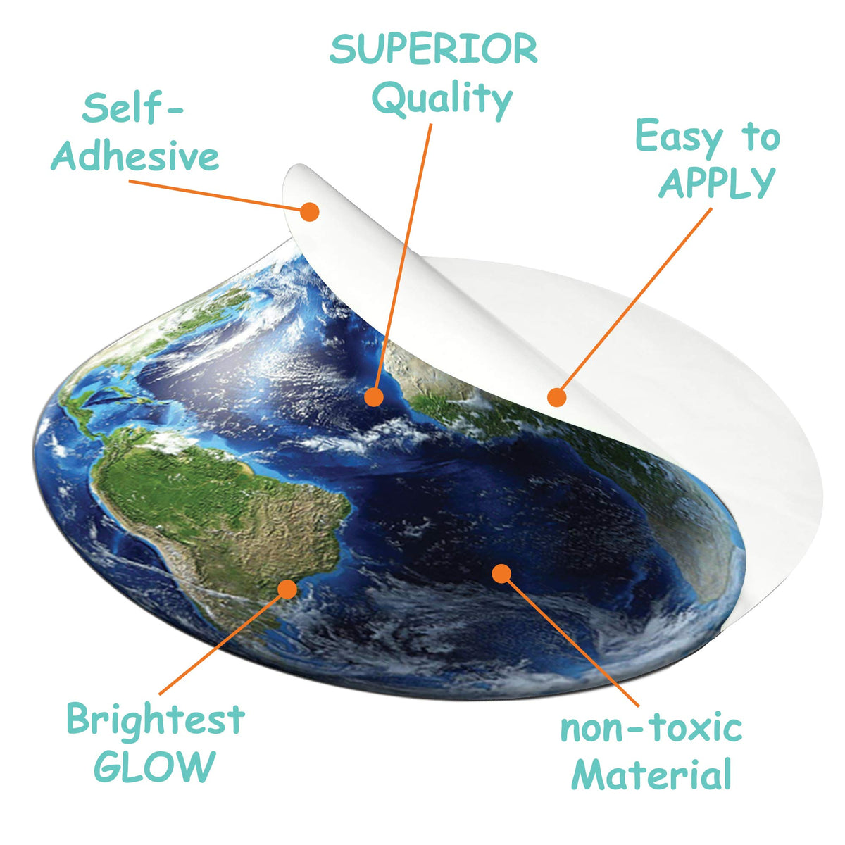 Create a mesmerizing space with our Glow in The Dark Planets wall stickers. Featuring the Sun, Earth, Mars, and more, these 9 glowing decals add a celestial touch to any bedroom or living room.