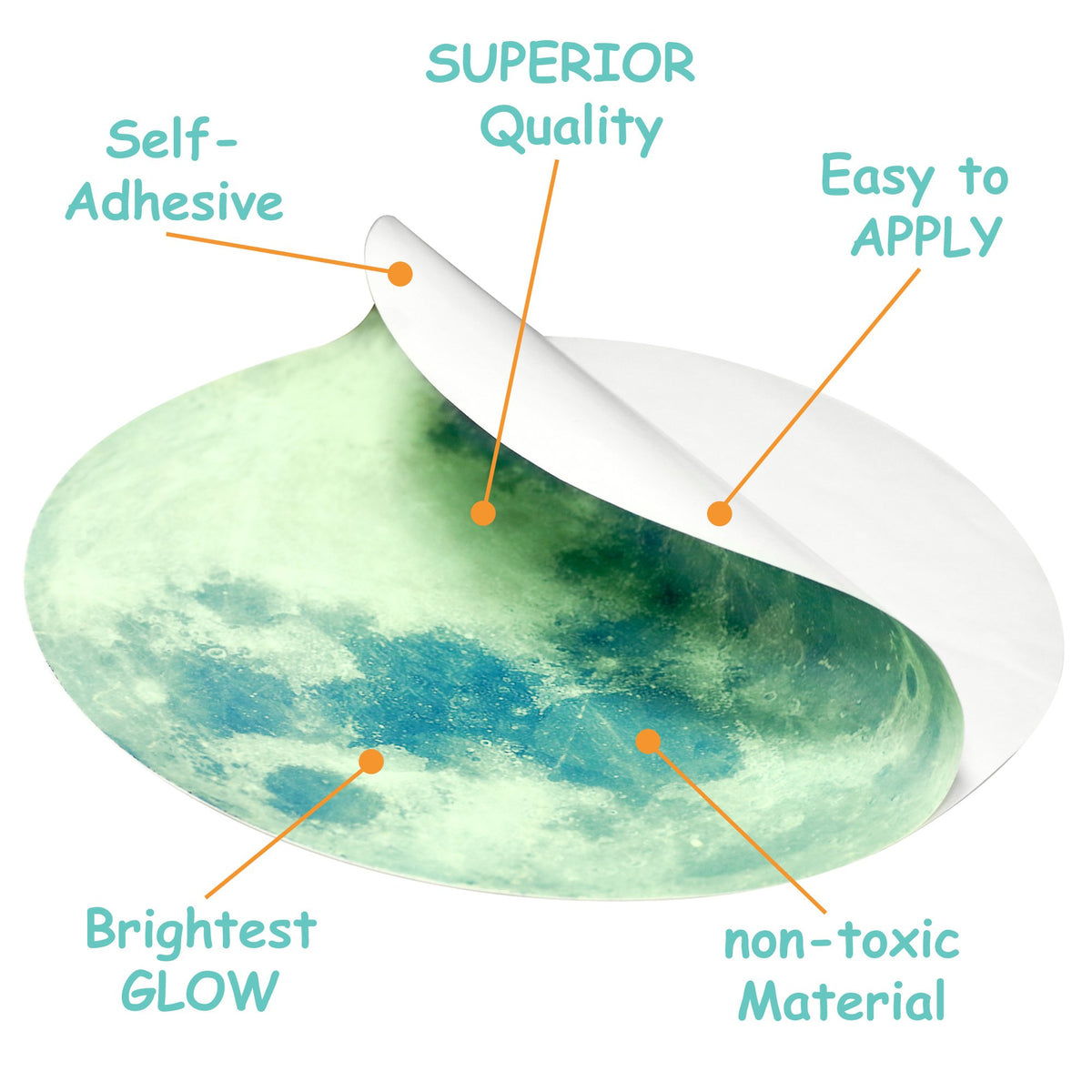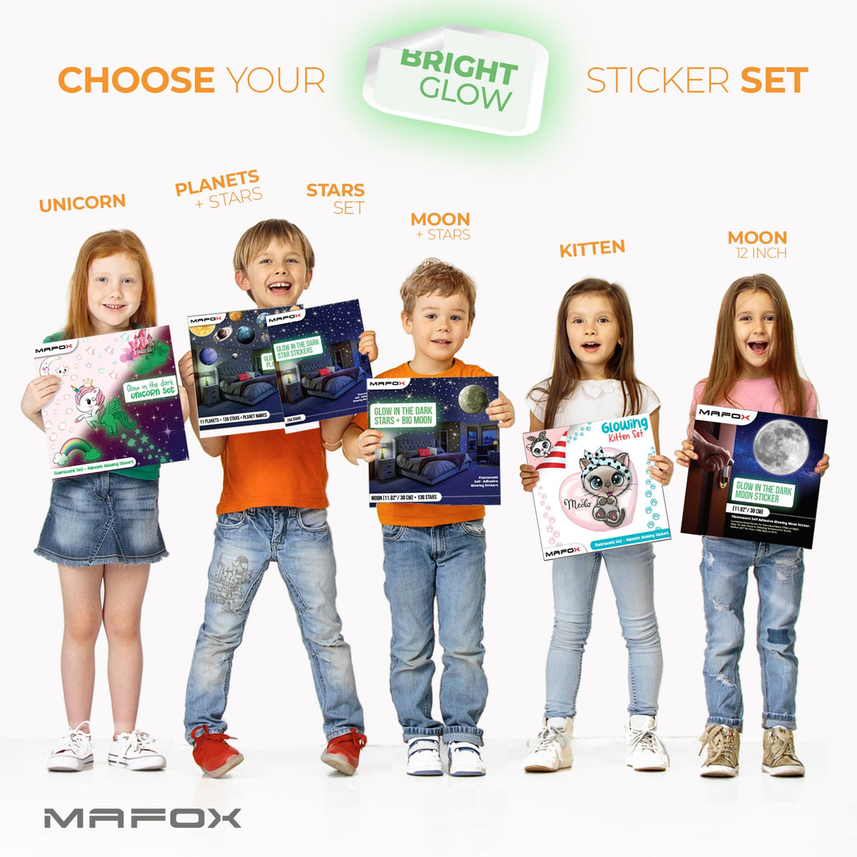 MAFOX Glow in The Dark Wall or Ceiling Stars with Moon Stickers – Luminous Decal Stickers for Simulated Moon Effect at Night – Ideal Kids Decor or Adults – for Kids Boys Girls