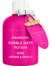 Magnesium Bubble Bath with Rose, Jasmine, and Vanilla scents offers a luxurious spa experience at home. This Epsom salt bath provides long-lasting foam and moisturizing properties for ultimate relaxation.