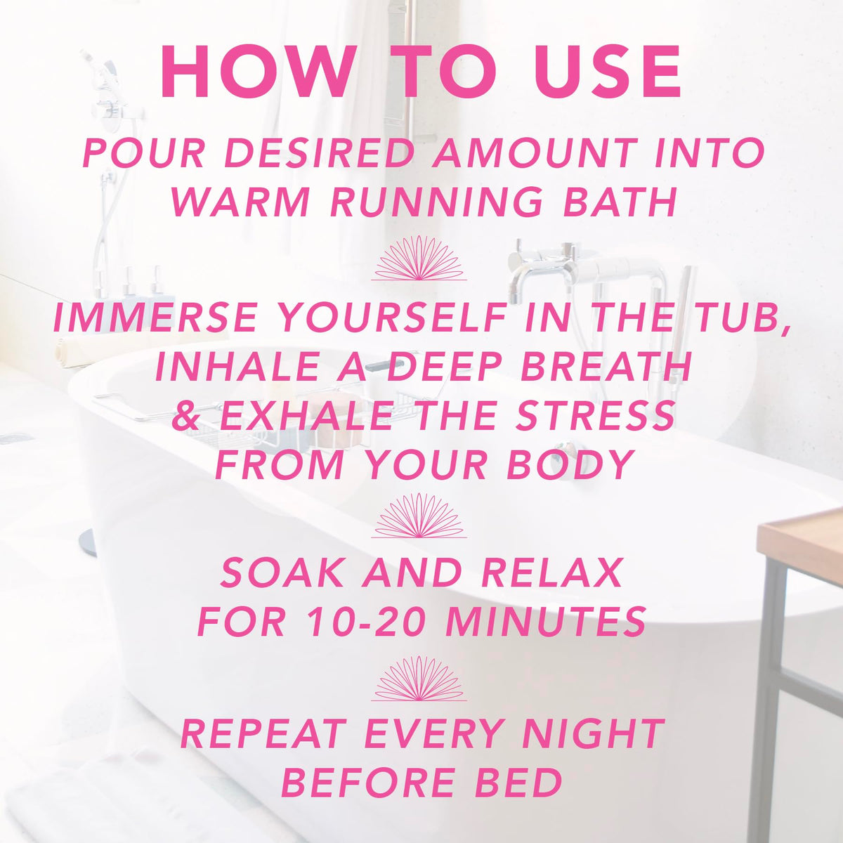 Dissolve desired amount in warm water. Immerse body for 1020 minutes.