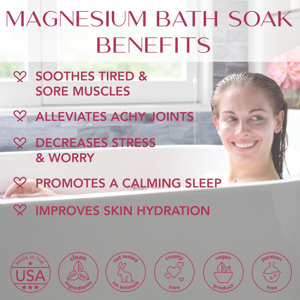 Magnesium Flakes Bath Soaks (8 oz) – Hawaiian Sea Salt Bath Soak w/Essential Oils – Bath Salts for Relaxation – Detox Bath Salt to Promote Sleep – Vegan Mineral Salt - (Aloha Rose)