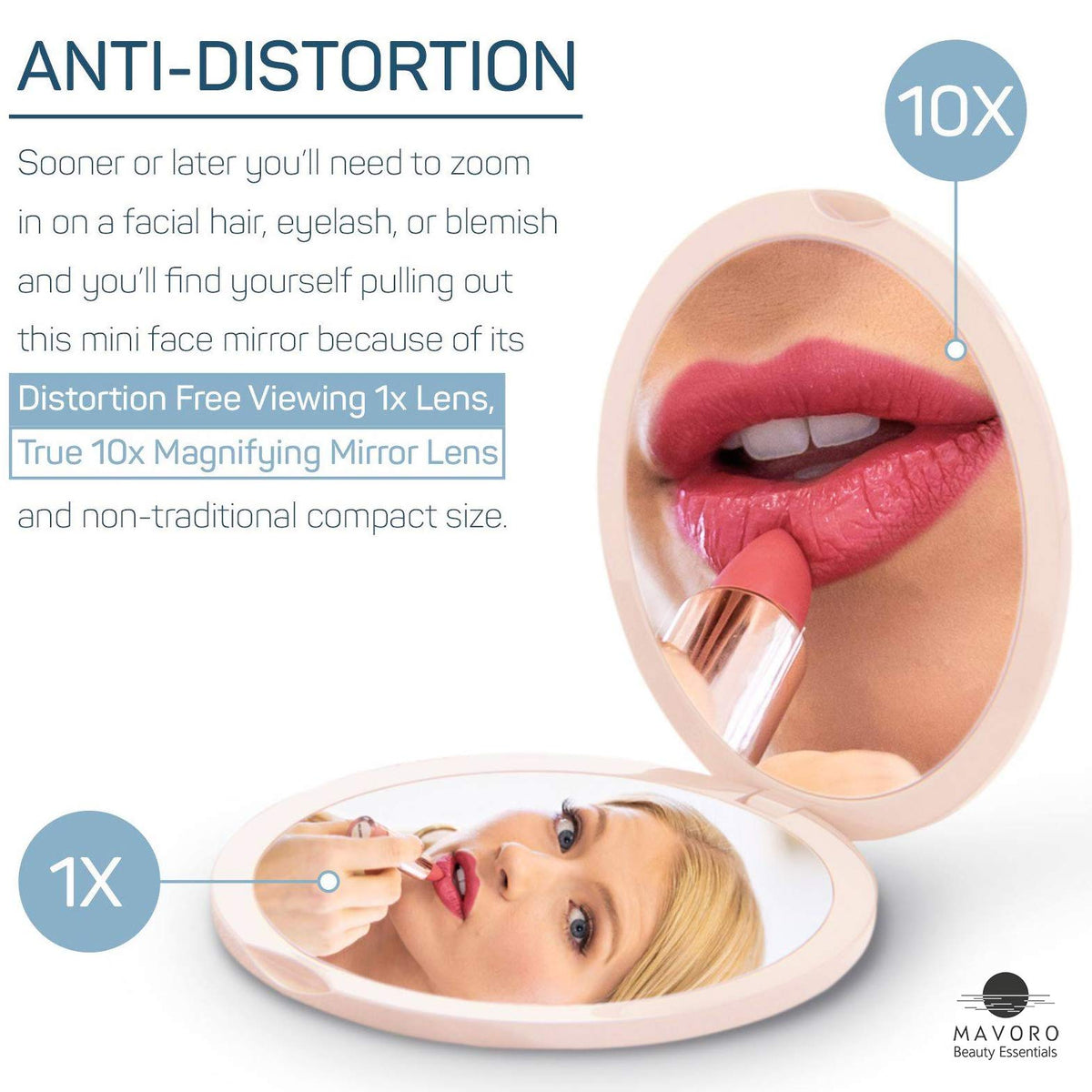Magnifying Compact Mirror for Purses, 1x/10x Magnification – Double Sided Travel Makeup Mirror, 4 Inch Small Pocket or Purse Mirror. Distortion Free Folding Portable Compact Mirrors (Millennial Pink)