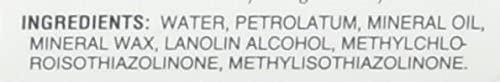 Ingredients: Water, petrolatum, mineral oil, ceresin, lanolin alcohol, caprylhydroxamic acid, phenoxyethanol, methylpropanediol
