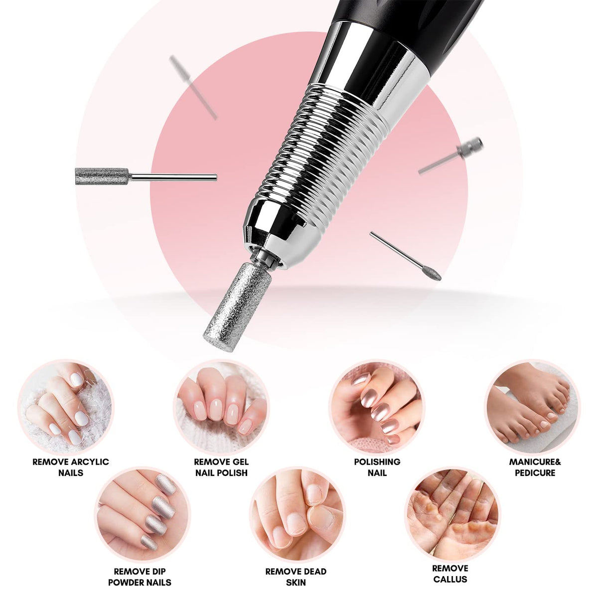 Makartt Stefy Portable Nail Drill, Handheld Electric Nail File Kit for Acrylic Nails Nail Drill Manicure Pedicure Polishing Shape Tools for Home Salon Use Black USB