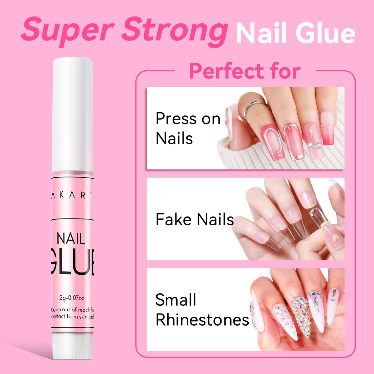 Secure your press-on nails with Makartt Super Strong Nail Glue. This professional adhesive bond glue set of 10pcs ensures long-lasting wear and quick repairs for broken nails, providing a reliable solution for nail care.