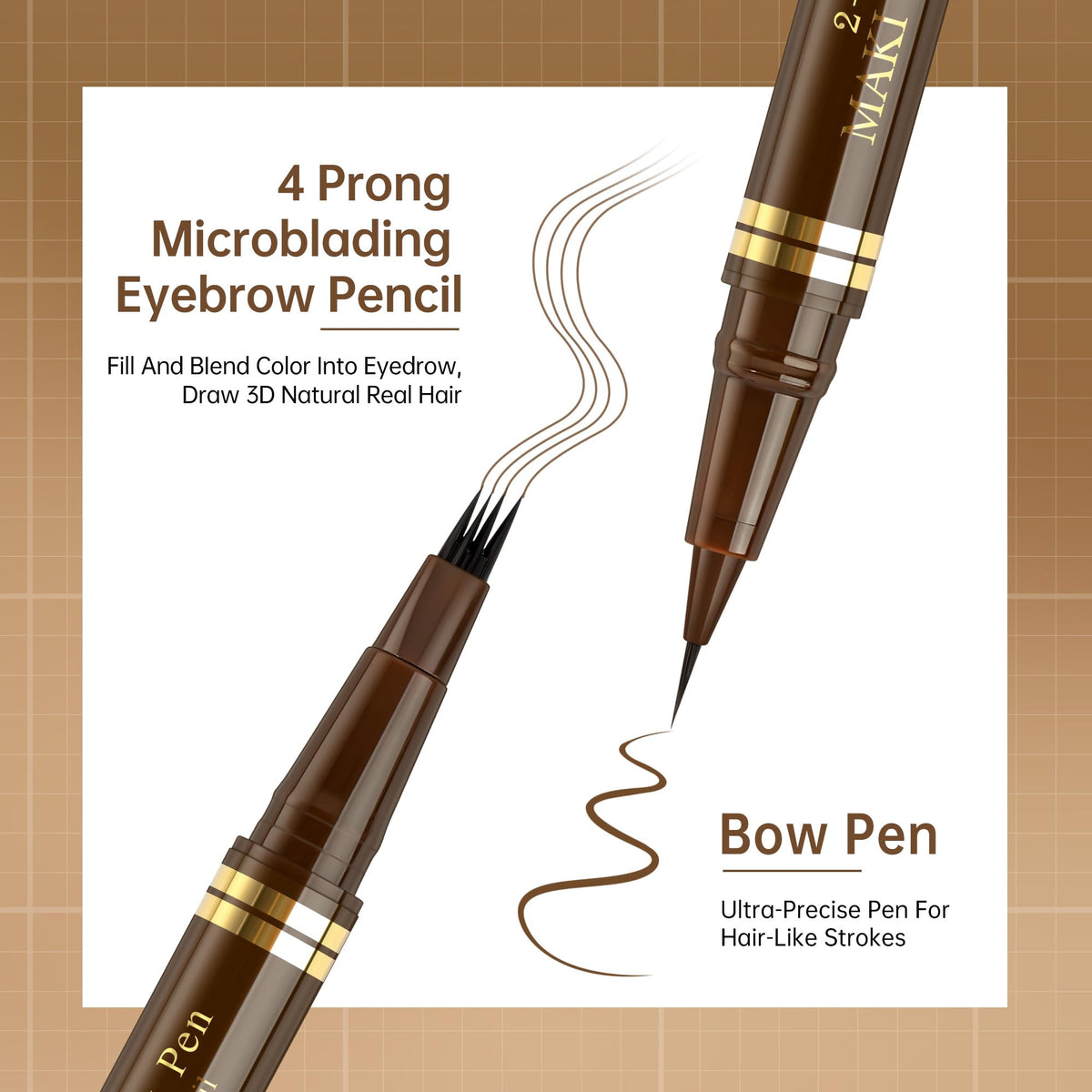 MAKI YIKA Microblading Eyebrow Pencil, Waterproof Eyebrow Pen with 4 Tip Brow Pen and Precise Pencil to Create Natural Hair-Like Brows with Dual-ended Brush (A-Dark Brown)